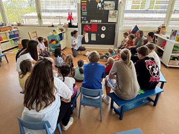 Am Donnerstagnachmittag besuchten SchülerInnen der 2. Sek den Kindergarten Zentral. Zur Überraschung aller Beteiligten wurde zur Begrüssung ein Brief vom Samichlaus vorgelesen. Darin stand, dass die Kinder den Samichlaus mit selbstgebastelten Laternen beim Chlauseinzug begleiten dürfen. Beim Kleistern der Laternen unterstützen die OberstufenschülerInnen die Kleinen. Bereits beim Basteln verstand man sich gut. Als Höhepunkt wurde gemeinsam auf dem Spielplatz gespielt und gelacht. In Erinnerung bleibt ein toller Nachmittag.